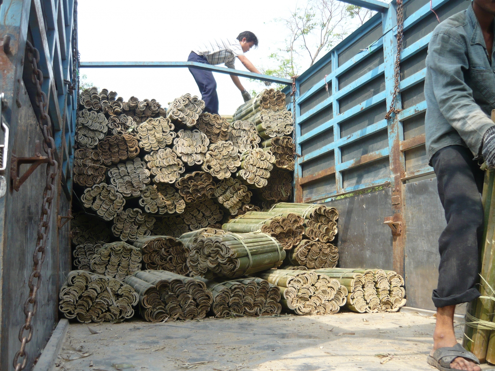 Sau khi tre được đốn hạ tập trung, tre được vận chuyển đến khu sơ chế tại rừng nhằm giảm bớt chi phí trong qua trình sản xuất. Tỉ lệ sản xuất que tre cho thủy sản không hơn 10 % so với trọng lượng nguyên liệu ban đầu. Vì vậy, việc sơ chế để tre có kích thước, trọng lượng và màu sắc ổn định ban đầu rất quan trọng. Phải đúng lúc, nhanh chóng, kịp thời mới bảo đảm chất lượng nguyên liệu bán thành phẩm cho các công đoạn sản xuất tiếp theo.
